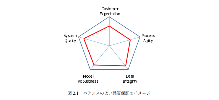 - 5つの項目がバランスよく満たされている状態: 良い品質のAIプロダクトは、データの整合性、モデルの頑健性、システムの品質、プロセスの柔軟性、そして顧客の期待に応えるという5つの軸でバランスよく評価されています。これにより、プロダクト全体が信頼性と安定性を保ちながら運用されることが可能となります。