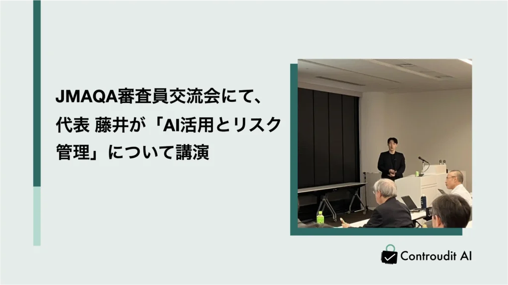 2025年10月27日、株式会社AI共創総研(旧:株式会社Controudit AI)は、JMAQA(日本能率協会審査登録センター)が主催する審査員交流会において、「AI活用とリスク管理」をテーマに講演を行いました。JMAQAは国内トップクラスの規模を誇るISO認証機関であり、審査の最前線で活躍する専門家が多数参加する場です。今回の講演では、急速に進化するAI技術が企業活動に与える影響を整理し、AI活用のメリットと、それに伴うリスクやガバナンスのあり方について、審査員の皆様に幅広くお伝えしました。