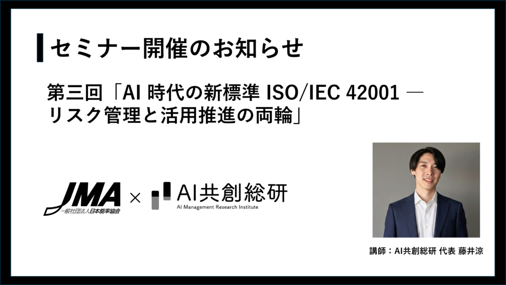 第三回開催「AI 時代の新標準 ISO/IEC 42001 ― リスク管理と活用推進の両輪」を2026年3月5日に開催 弊社代表が講師を務めます